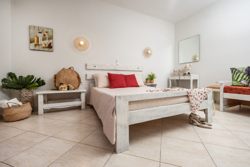 Erato features a double bed, a fully equipped kitchen and a spacious garden view terrace.